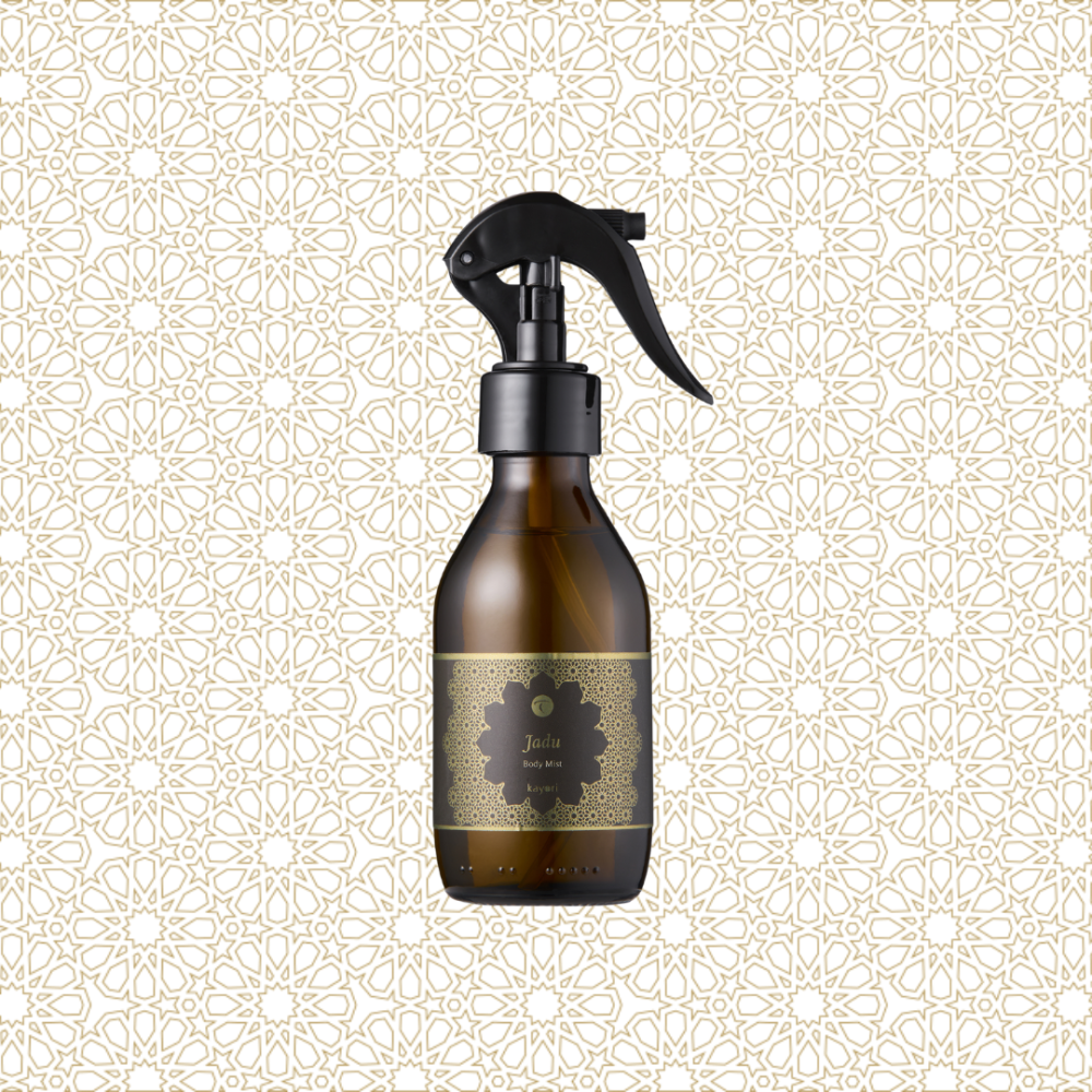 Om de beleving van Thermen Berendonck helemaal af te maken, heeft Kayori samen met Thermen een eigen geur ontwikkeld. Een geur die que topnoten perfect aansluit bij het DNA van Thermen Berendonck: het luxe India, oosterse architectuur en geur invloeden. Een feest voor de zintuigen. De uitstraling van de producten is dan ook ondergedompeld in deze unieke stijl: een prachtig label met herkenbaar patroon.