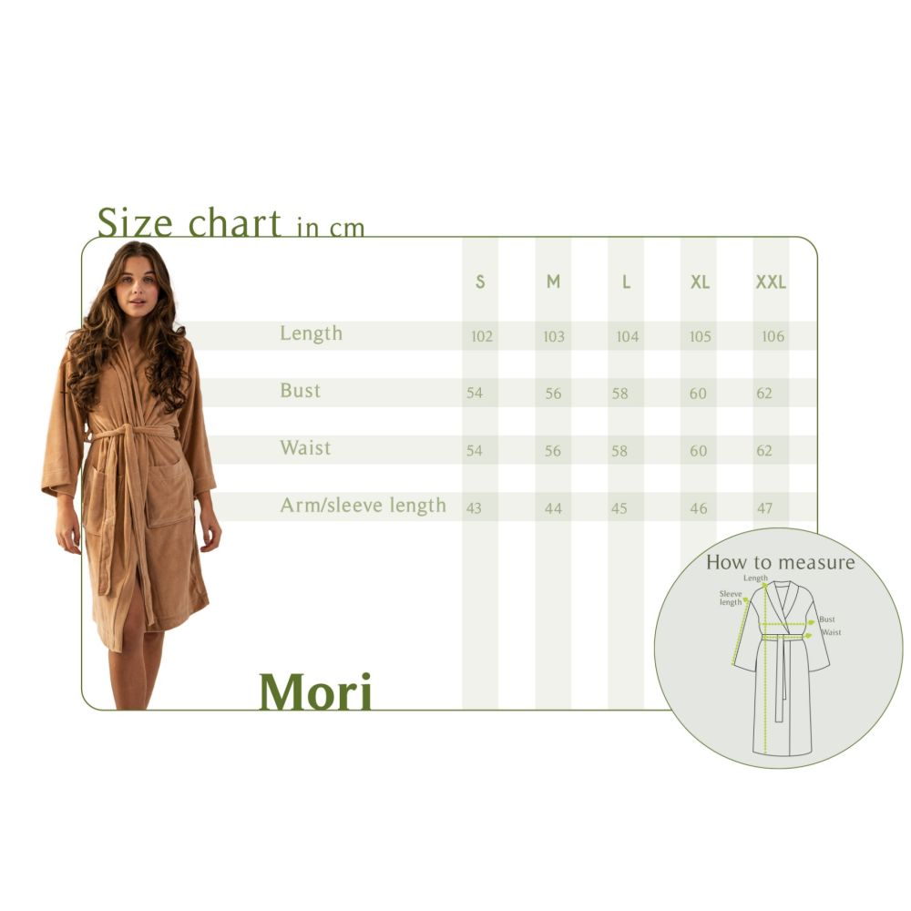 Mori-badrocken är unisex och finns i fem vackra färger, så det finns alltid ett alternativ som passar din stil. Oavsett om du njuter av en avslappnande morgon hemma eller efter en uppfriskande dusch, omsluter Mori-badrocken dig med värme och komfort.